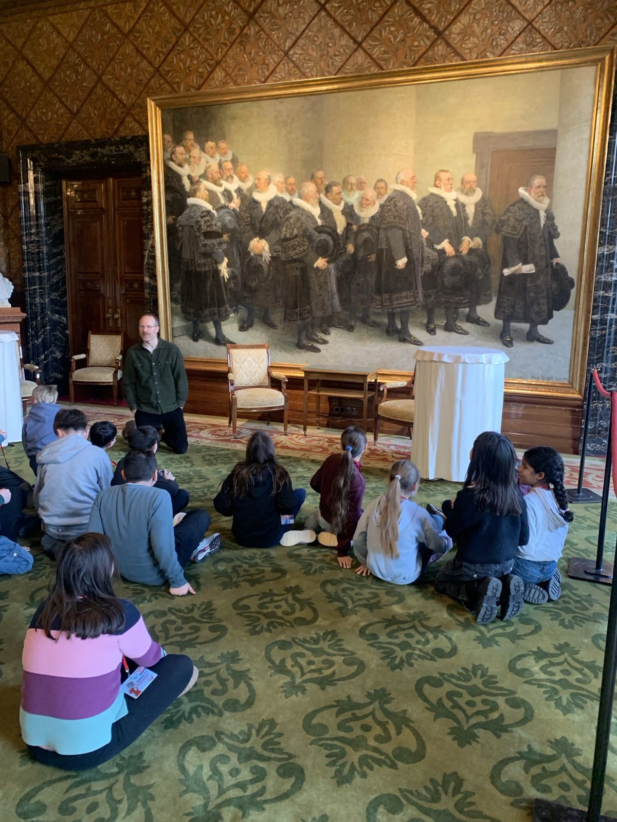 Nach dieser Lehrstunde in Sachen Demokratie bewunderten sie die prunkvollen Räumlichkeiten des Hamburger Rathauses und erfuhren, dass im sogenannten Waisenzimmer Kinder in ihrem Alter vor ca. 150 Jahren die fantastischen Schnitzereien an Türen und Wänden anfertigten.